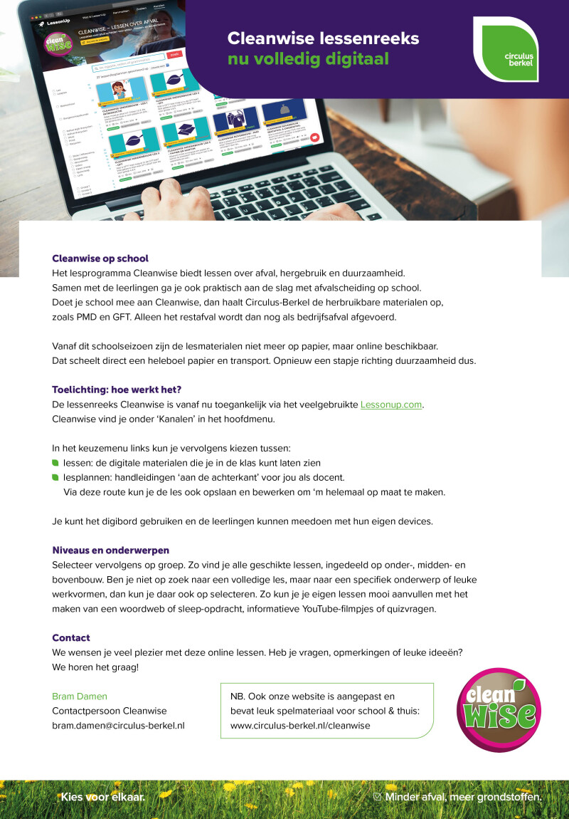 Clean Wise is een programma voor basisscholen die het afval op school, net als thuis, gescheiden willen aanbieden. Het programma is gemaakt voor gemeenten in het werkgebied van Circulus.