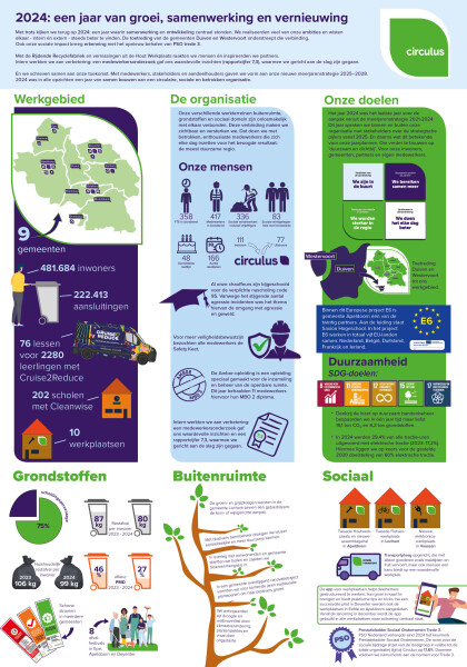 Met de Rijdende Recyclefabriek en verrassingen uit de Hout Werkplaats raakten we mensen én inspireerden we partners. Intern werkten we aan verbetering: een medewerkersonderzoek gaf ons waardevolle inzichten (rapportcijfer 7,3), waarmee we gericht aan de slag zijn gegaan.