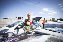 Wethouder Birgit van Veldhuizen maakte op vrijdag 29 mei bezoekers van het Recycleplein Doesburg blij met GFT-compost voor de tuin. Fotografie: Tamara Verheij Inbeeldt Fotografie.