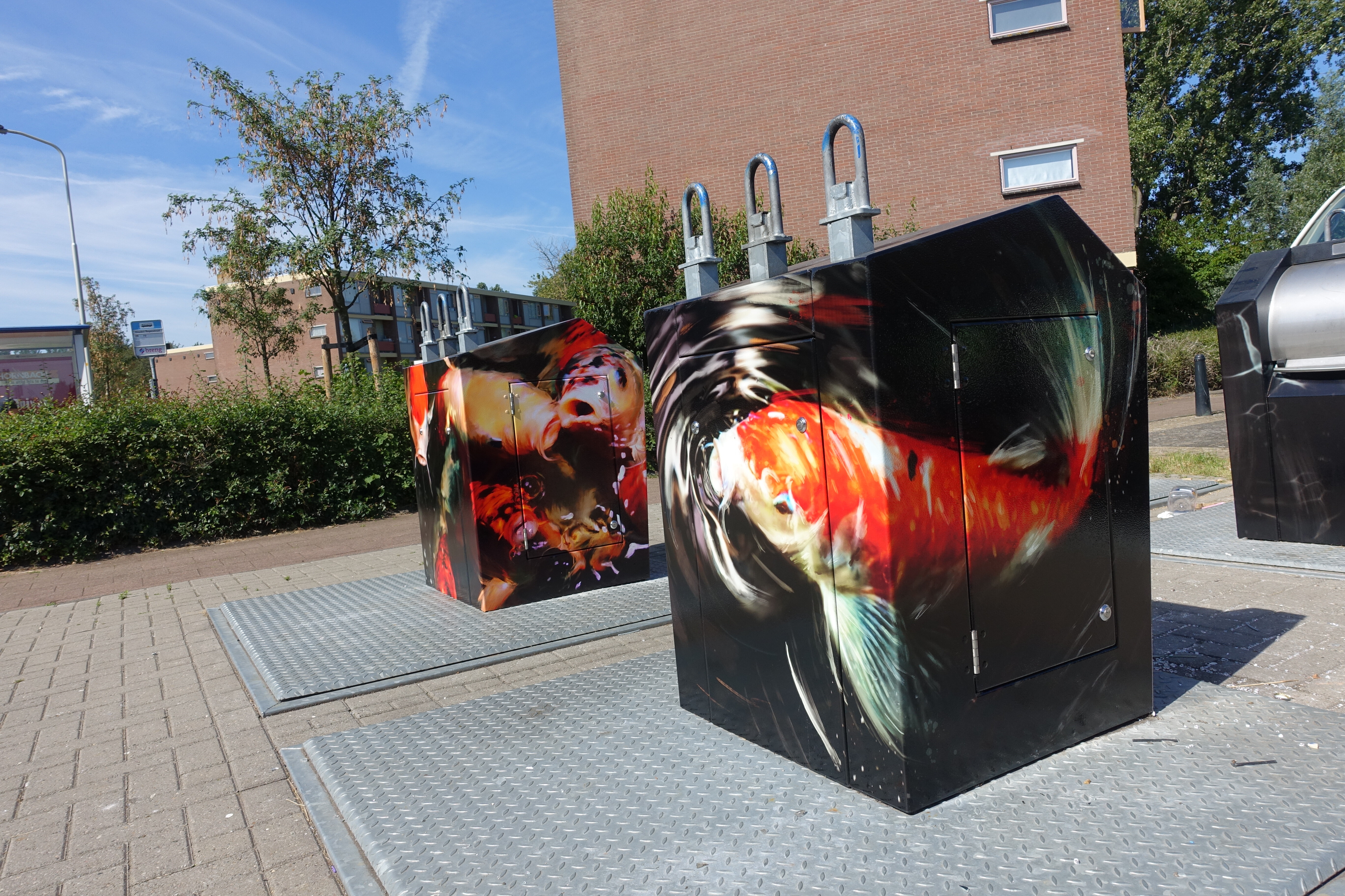 In close up zie je de karpers zwemmen. Het lijkt wel alsof je naar een aquarium kijkt. Met het opvallende beeld willen we voorkomen dat bewoners hun afval dumpen naast de containers. Daar had het burgemeester Keiserplein veel last van. Het ontwerp werd door bewoners van wijk De Ooi als beste gekozen. De actie trok veel bekijks én persaandacht. Zo besteedden Omroep Gelderland en ook Radio 2 er aandacht aan.