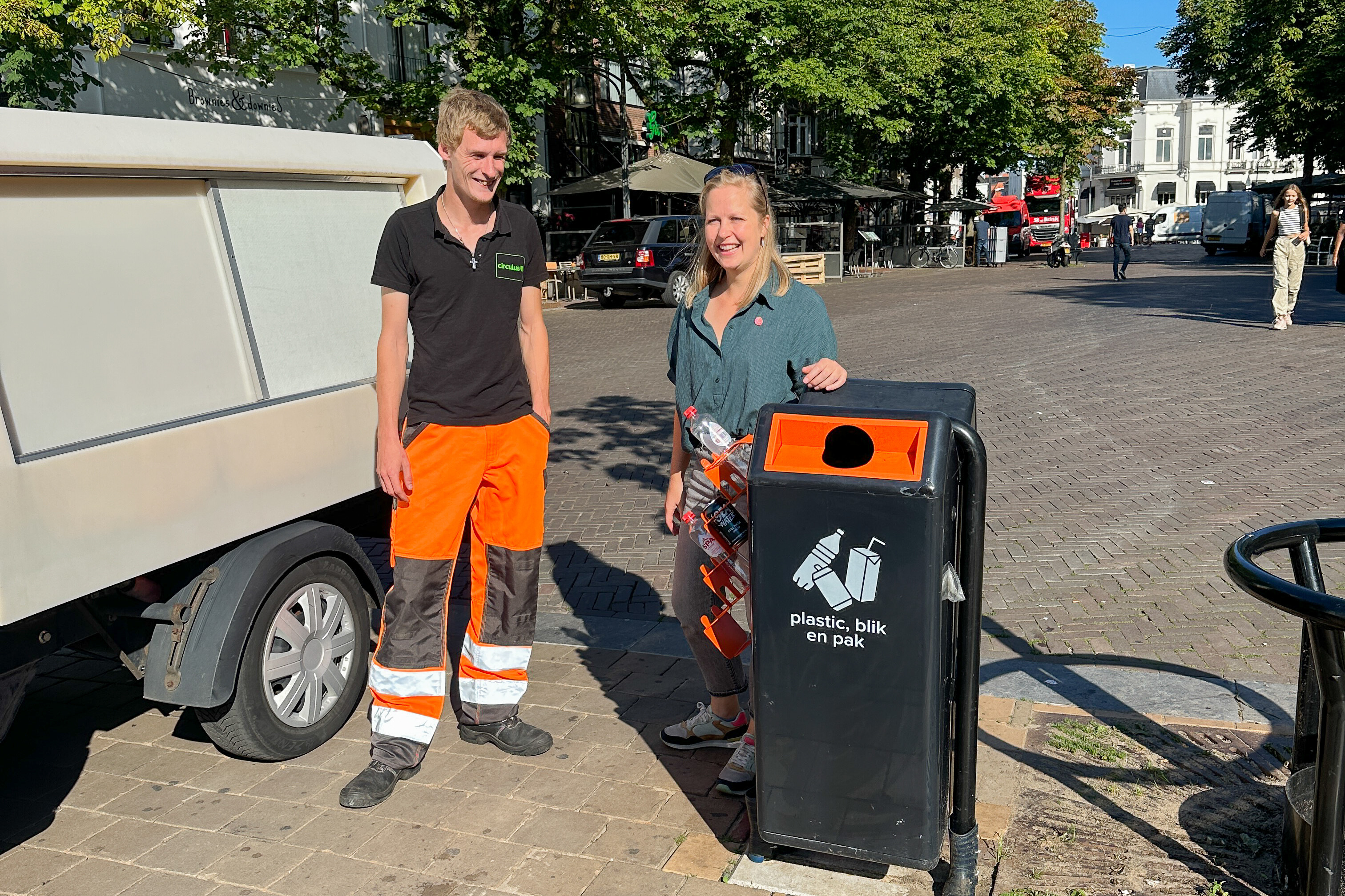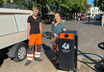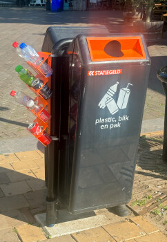 ‘Ik zag de optie in een andere stad’, legt raadslid Dorien Visser uit. ‘Het leek me een goed idee om dat ook in Deventer te introduceren en dus heb ik in juli een motie ingediend. Die is aangenomen en vandaag plaatsen we het eerste rek. Nu hoeven mensen die het statiegeld graag willen hebben niet meer in de afvalbakken te zoeken en worden de flesjes en blikjes gerecycled!’